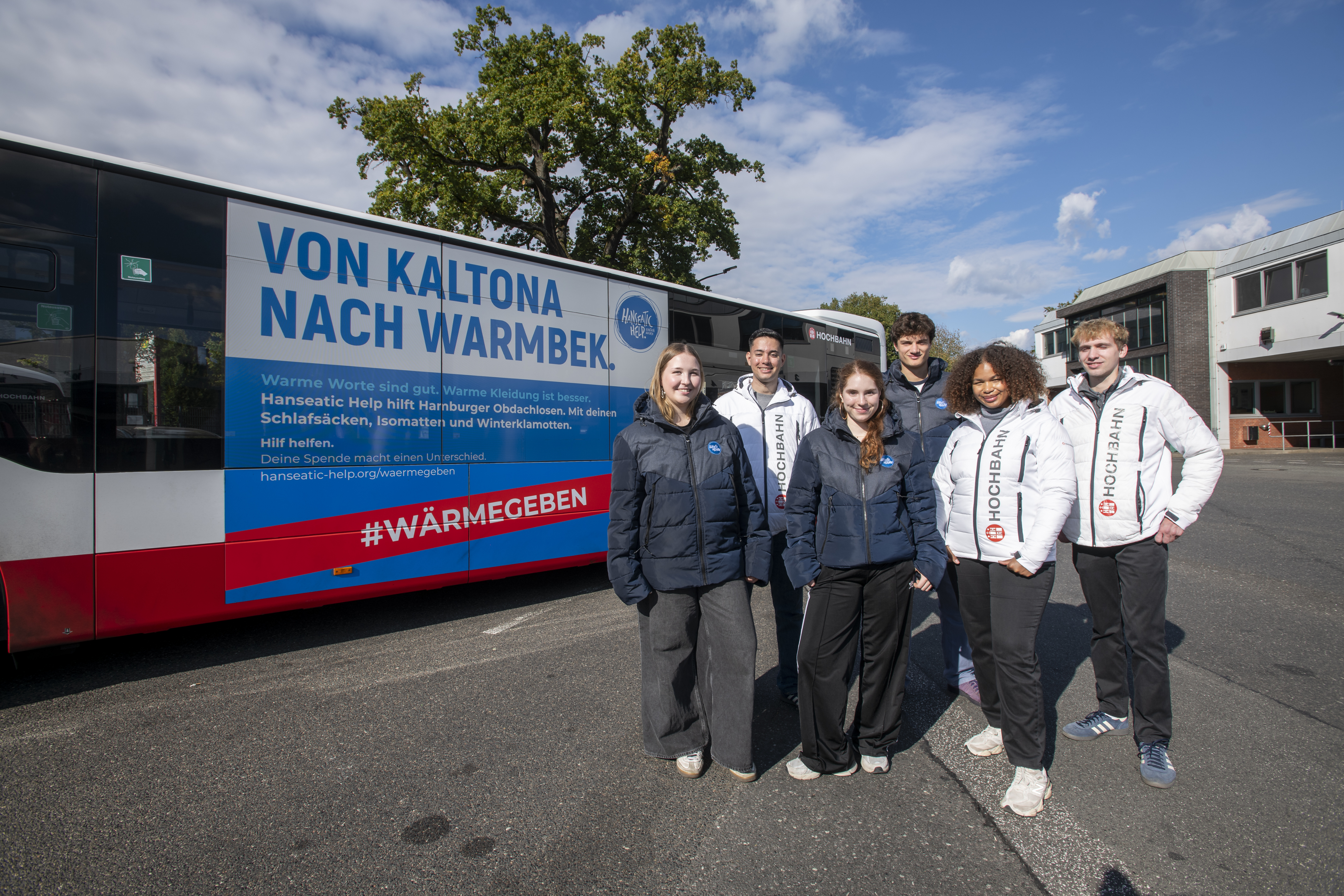 Nächster Halt: Inselparkhalle. Bereits seit fünf Jahren kooperieren die Hamburger Hochbahn AG (HOCHBAHN) mit dem Hanseatic Help e.V. unter dem Motto #wärmegeben. Mit der jährlichen Winterkampagne möchte der Verein dazu beitragen, dass möglichst niemand in Hamburg frieren muss. Mit dem Wärmebus der HOCHBAHN können Sammel-Aktionen in der ganzen Stadt ermöglicht werden und viele Menschen warme Sachen direkt in ihrer Nachbarschaft abgeben. Der Wärmebus hält an folgenden Stationen: