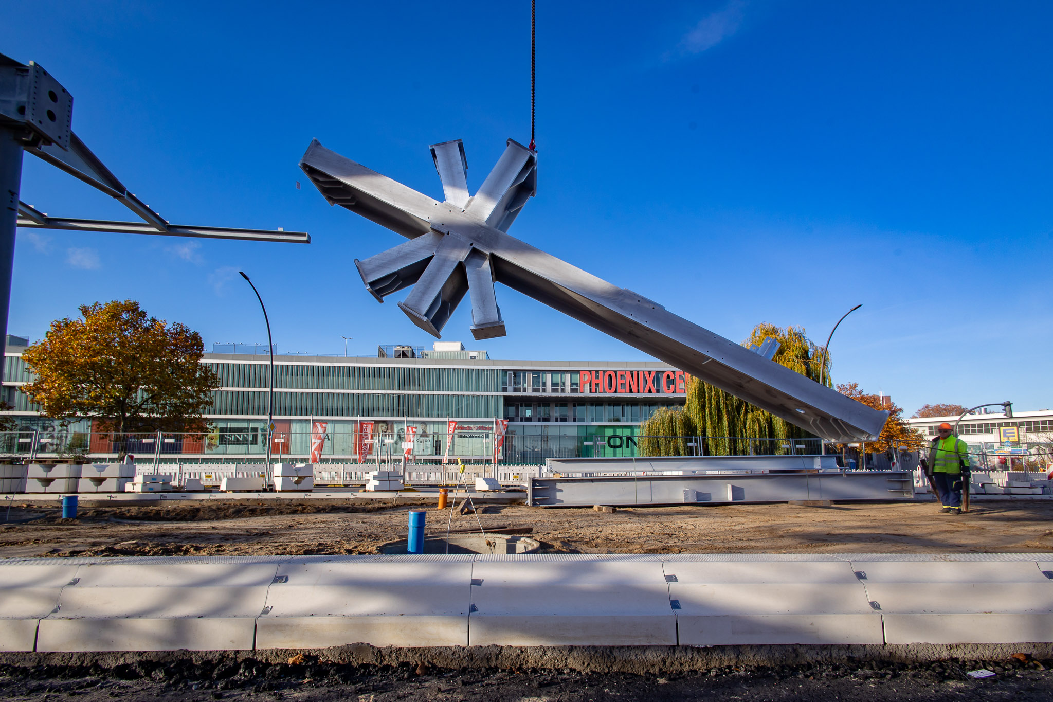Halbzeit beim Neubau ZOB Harburg. Damit ist ein wichtiger Meilenstein erreicht. Die aufwändigen Sanierungs- und Gründungsarbeiten im Untergrund sind weitestgehend abgeschlossen, der Bau schreitet voran und tritt nun sichtbar in seine nächste Phase: der Stahlbau für die moderne Dachkonstruktion, die die zentrale Busanlage im Süden Hamburgs überspannen wird, beginnt.